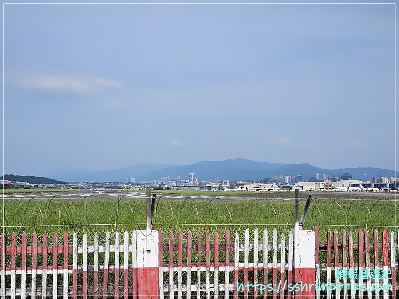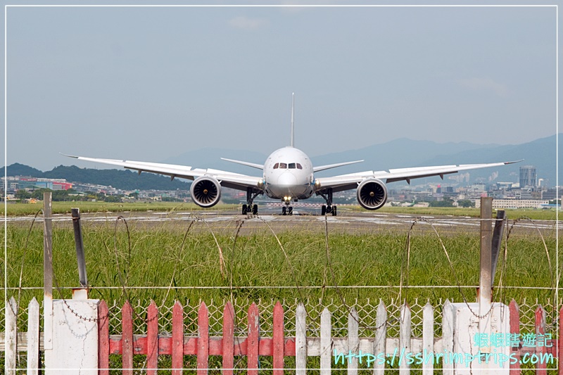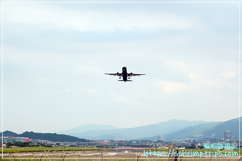 佇足往機場方向觀看,還沒開啟手機APP的飛機動態,就瞧見遠方有一台飛機降落囉!