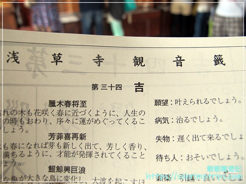 順著大眾的參拜方式,那時的蝦先生也求了一支籤(據說淺草寺的籤挺靈驗,兇籤也不少XD)