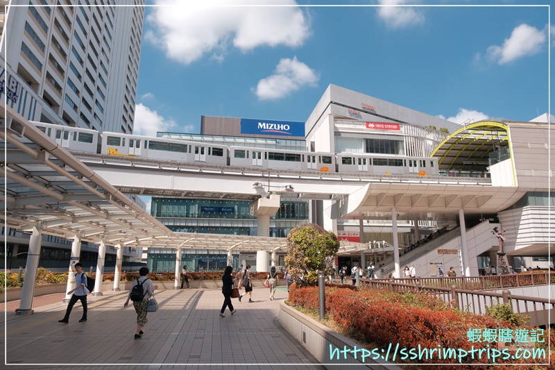 蝦先生由車站走出來是以天橋平台作為連結各路口的通道,站在橋上能見到地面跑的公車、抬頭一看還有的高架軌道,人潮來來往往堪稱是最繁忙的車站。