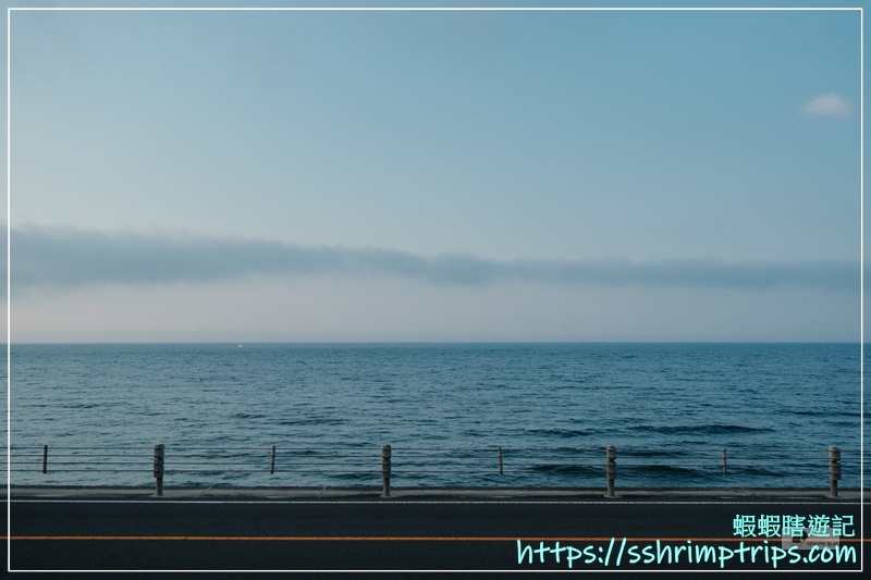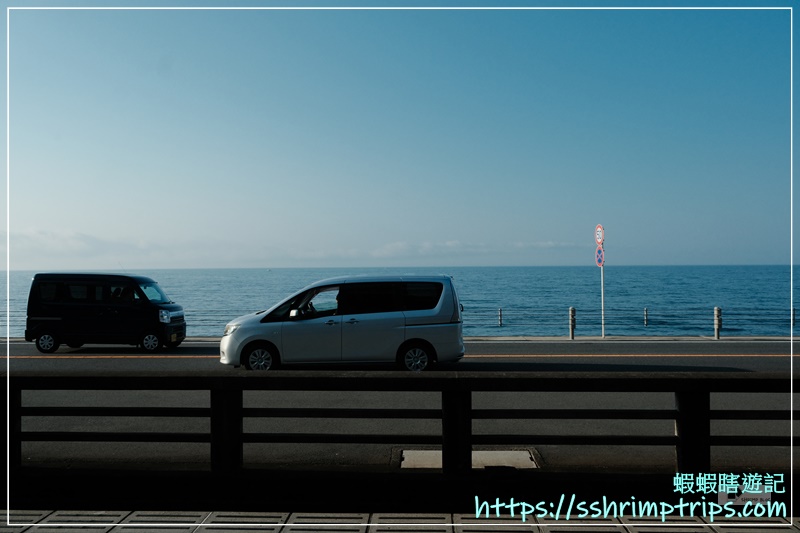 在電車穿過兩側民宅後,湘南海岸的景色就出現在眼前。