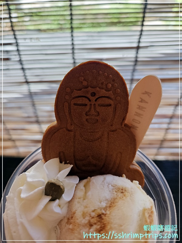 蝦先生除了點了一杯咖啡提神外,也點了他們家的冰淇淋也頗具特色,餅乾是大佛樣貌喔!