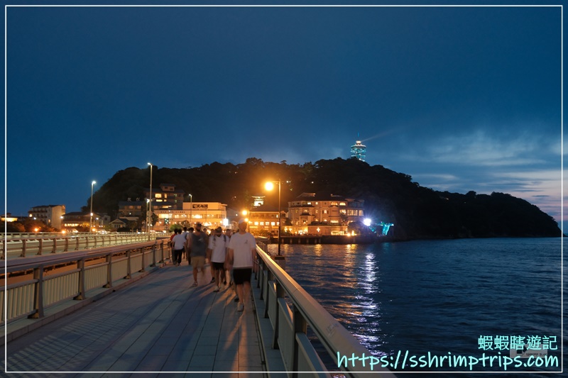 好像江之島沒有因為到了晚上就少了人潮,還是蠻多人走進島嶼。