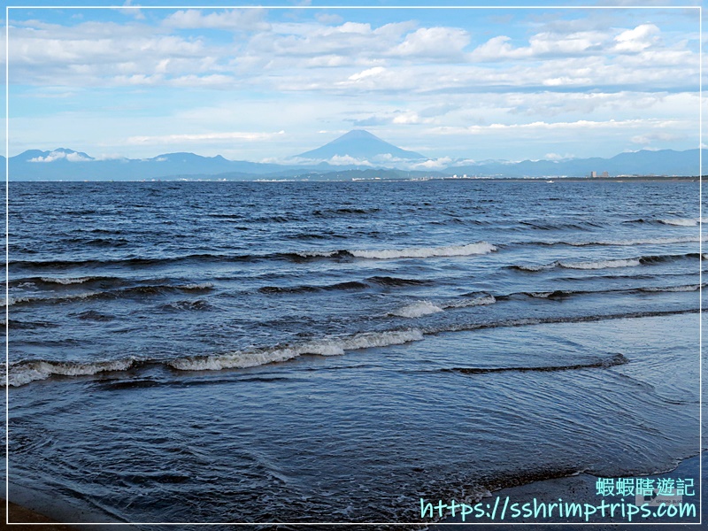 沒想到天氣非常好,站在漁港旁的鵠沼海水浴場竟然能欣賞到富士山。