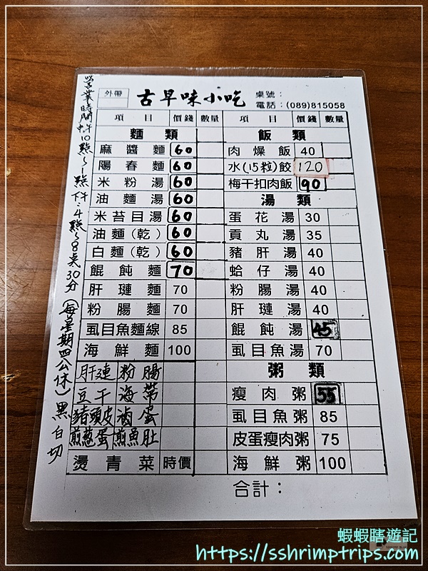 菜單拍拍,原來他們家叫作「古早味小吃」。