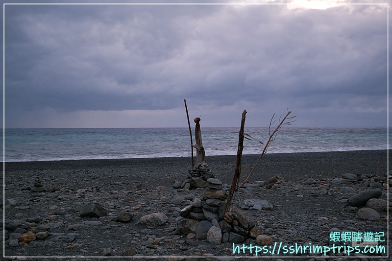 海灘上見到不少以石頭與漂流木堆疊而成的裝飾,不禁讓蝦先生猜想,是否也蘊含著這樣的寓意?