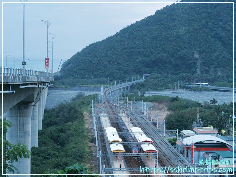 路口附近還有一條登山小徑可以走至路口上方的觀景平台,是可以將車找個地方停好再步行上去,從高處俯瞰村落、鐵道與遠方山海交會的景色。
