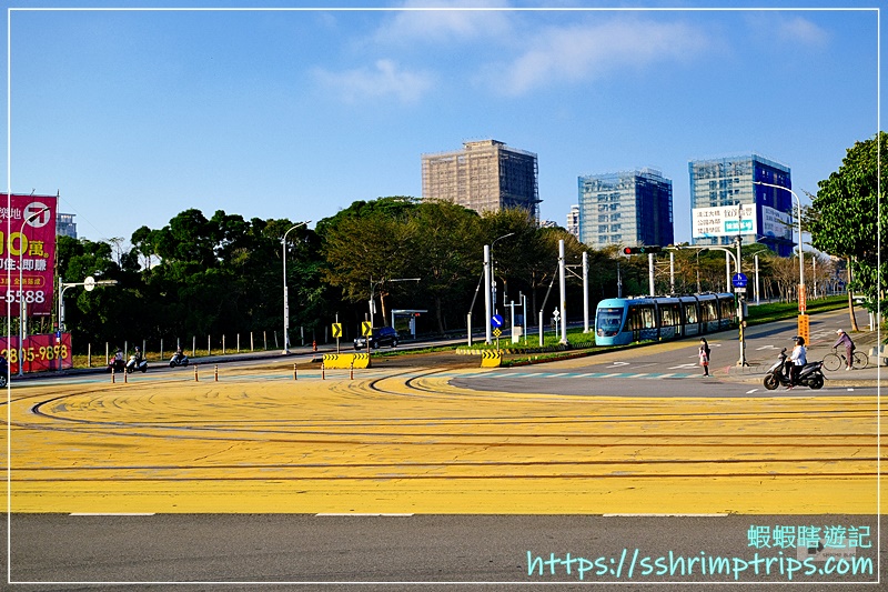 當軌道從高架段轉為平面行駛時,畫面也成了蝦先生對輕軌的第一印象。