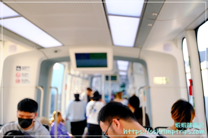 緩緩行駛,速度沒有一般捷運那麼快,望向車窗,沿途街景緩緩展開,讓旅人們能欣賞淡水新市鎮的風貌。