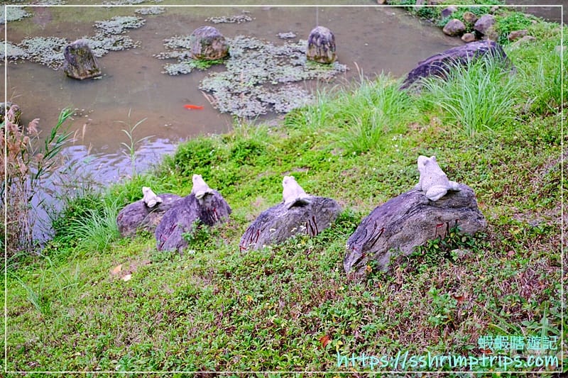 沿著岸邊散步,還能見到青蛙造型的裝置點綴其間。