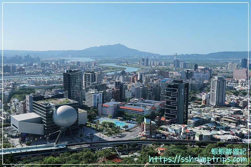 在這樣的好天氣裡,不僅能清楚俯瞰基隆河沿岸的城市景致,遠方八里觀音山的輪廓也清晰可見。