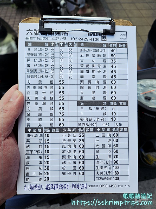 招牌上寫著「六號碼頭肉圓」,但在這個時段,實際營業的則是「六號碼頭麵店」。